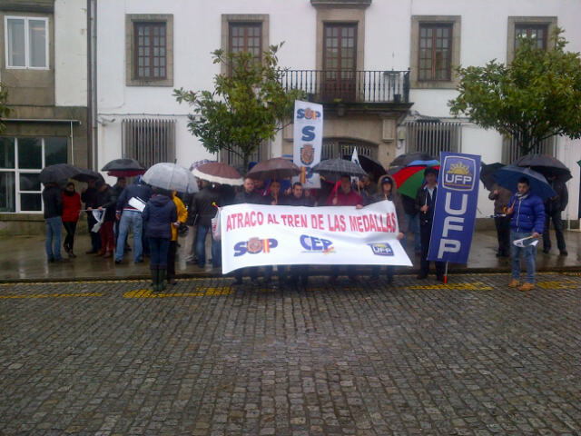 Cerca de medio centenar de representantes de los sindicatos policiales SUP, CEP y UFP se han concentrado ante la comisaría de Santiago de Compostela para denunciar la concesión de condecoraciones con motivo de la actuación en el trágico accidente de tren de Angrois a funcionarios que "ni tan siquiera pisaron" las vías, mientras otros han quedado fuera a pesar de haber dado "lo mejor de sí" para ayudar a sus conciudadanos