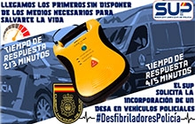 Desde el SUP reclamamos desfibriladores para una mejor atención asistencial urgente. Que los vehículos de la Policia Nacional lleven un DESA. Tiempo de respuesta eficacia. Objetivo salvar vidas