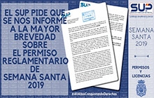 Se nos informe a la mayor brevedad posible de cuáles son las intenciones de la DGP en relación al permiso reglamentario de Semana Santa. Que en caso de suspensión o retraso de este permiso, y ante la pérdida de derechos laborales y sociales...