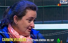 Carmen Velayos, secretaria general del SUP en Cádiz, reivindicando en el programa de La Sexta Carretera y Manta con Jesús Cintora, más medios materiales y humanos para el Campo de Gibraltar