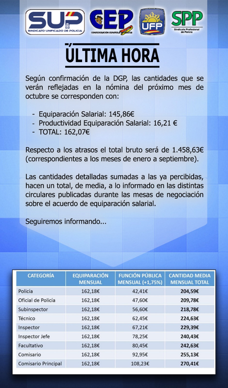 Te detallamos las cantidades a percibir en la nómina de octubre