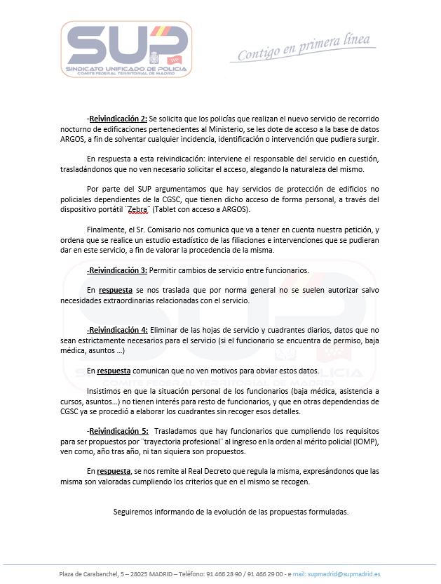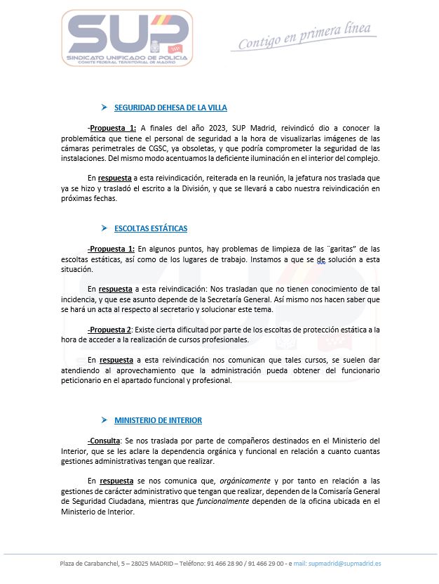 El pasado martes mantuvimos reunión con la Jefatura de la Unidad Central de Protección en la que tratamos todas las reivindicaciones que nos habéis ido transmitiendo. Hemos presentado, entre otras cuestiones, la regulación de una Jornada Laboral para la SODE