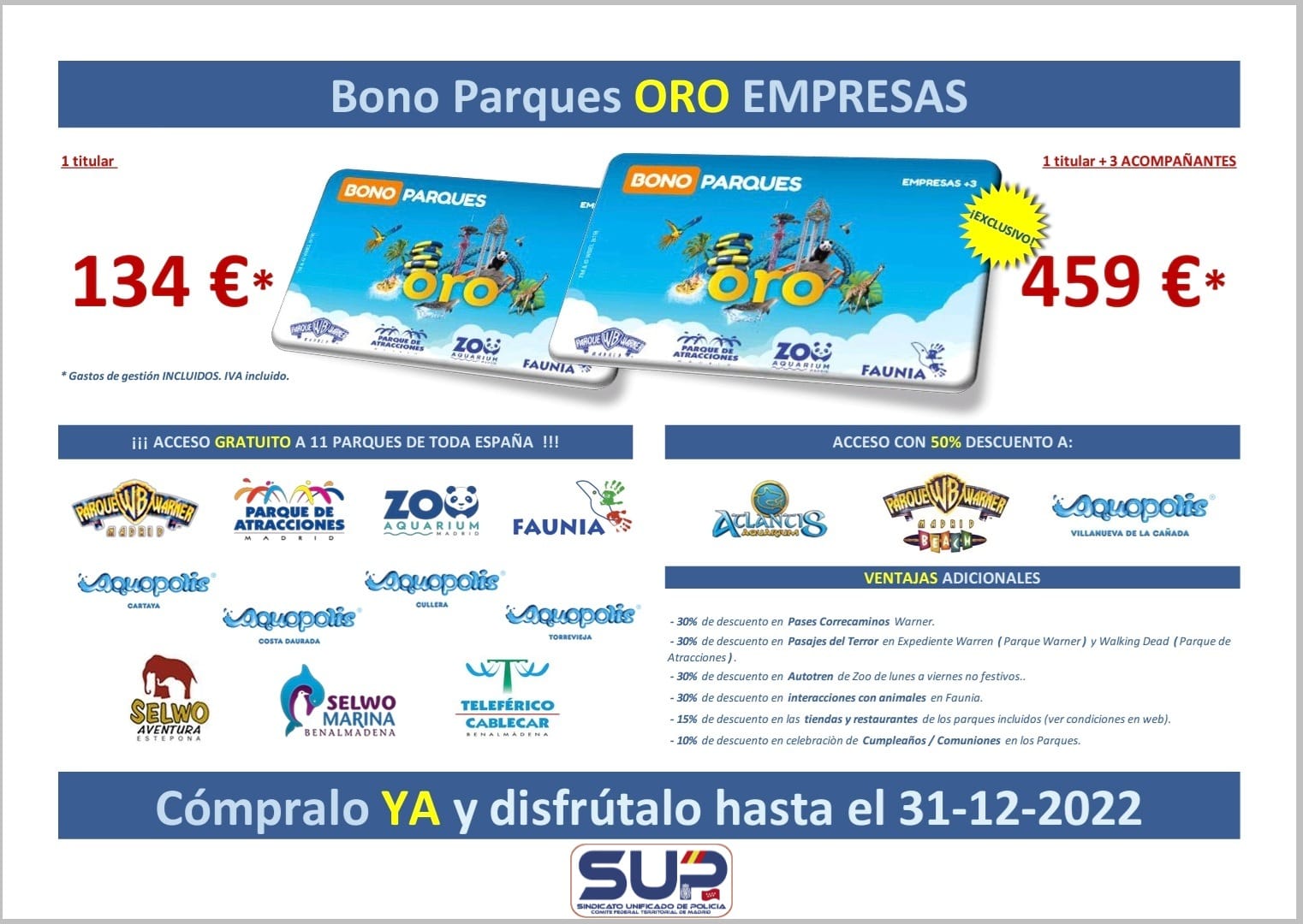 Renovamos el acuerdo para adquirir el bono parques durante todo el 2022 con las mejores condiciones, podrás beneficiarte de grandes descuento y acceso a 11 parques de toda España.