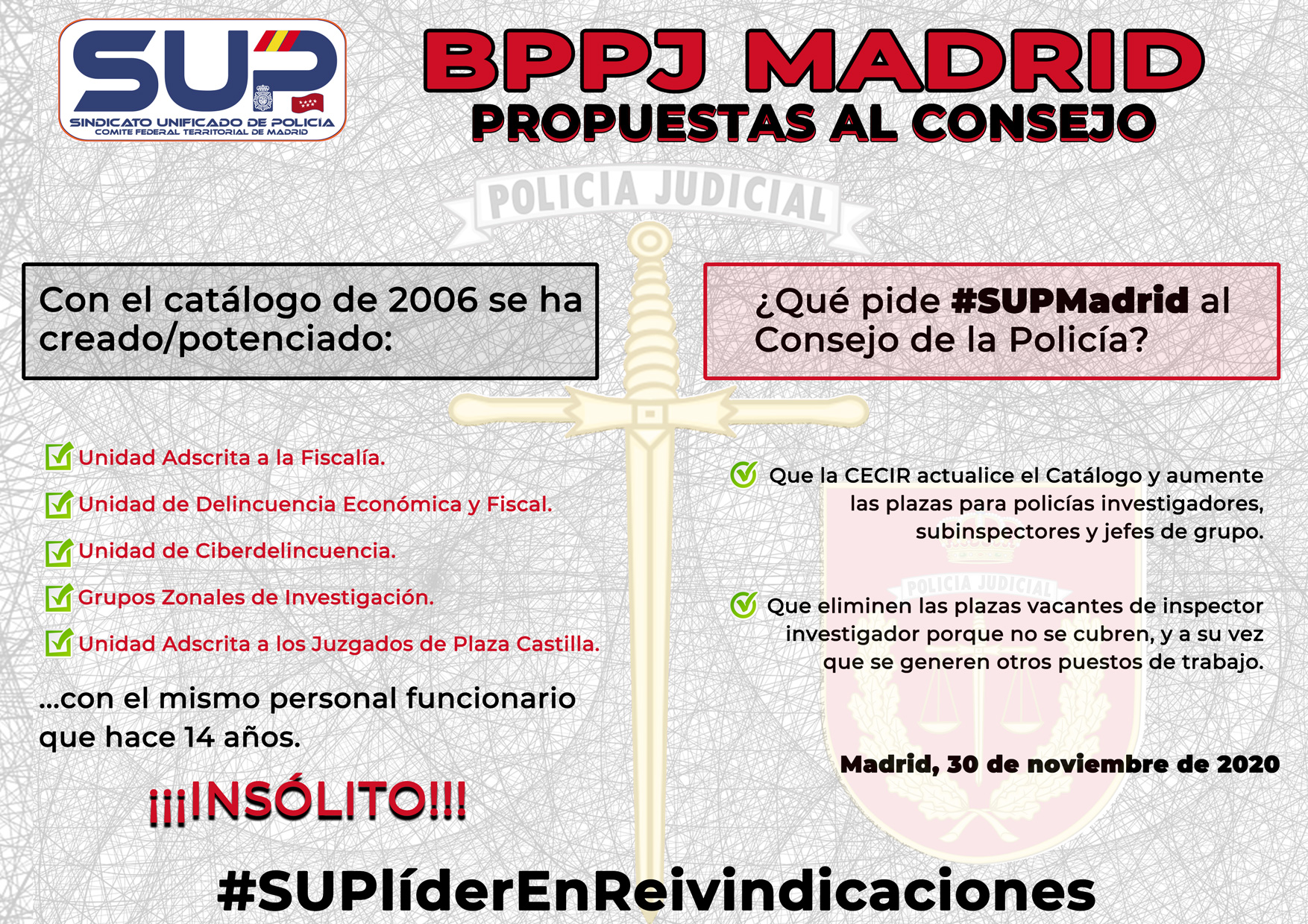 #SUPMadrid solicita al Consejo de Policía modificaciones en el CPT de la BPPJ.
