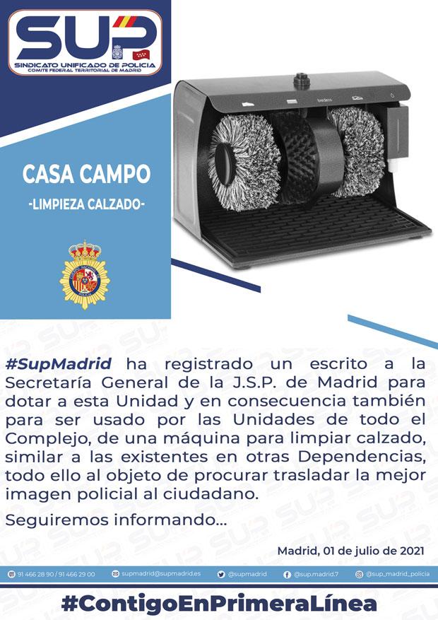 SUP Madrid solicita a la Secretaría General de la JSP de Madrid la adquisición de una máquina de limpieza de calzado. De este modo se facilitaría la limpieza de numerosos compañeros y mejoraría la imagen policial ante el ciudadano.