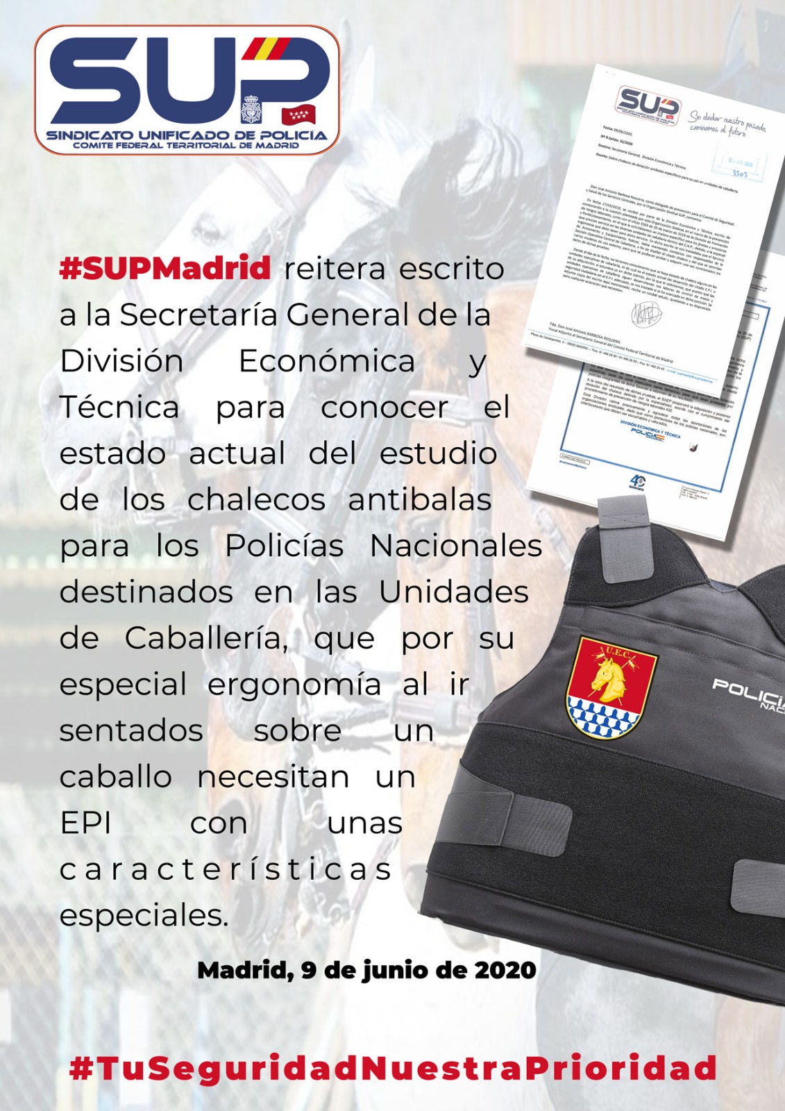 Solicitamos a la División Económica y Técnica situación de la compra de chalecos para las Unidades de Caballería