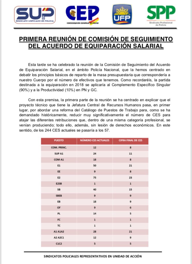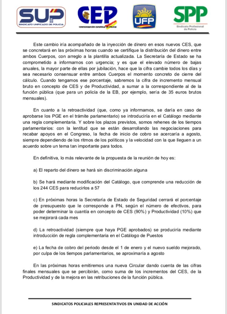 Nos piden una reunión a la Unidad de Acción, donde el SUP mostrará que no cederá ni un paso en la equiparación.