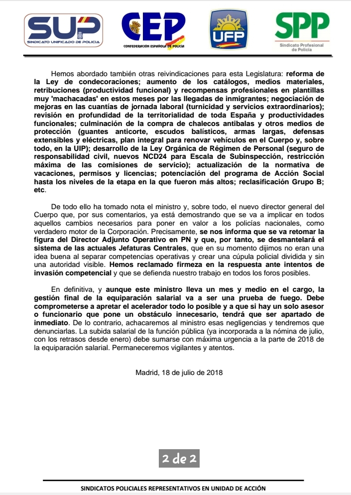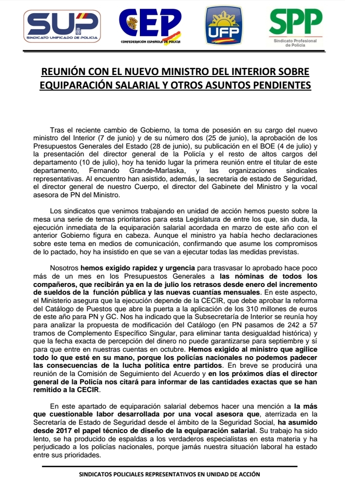 Os informamos de la reunión mantenida con el Ministro en la tarde de ayer