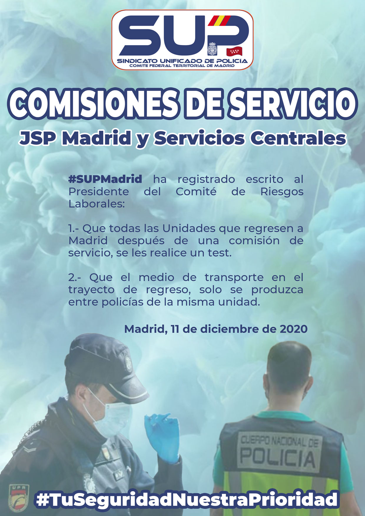 #SUPMadrid solicita medidas anti-covid en las comisiones de servicio llevadas a cabo por los funcionarios de diferentes unidades.