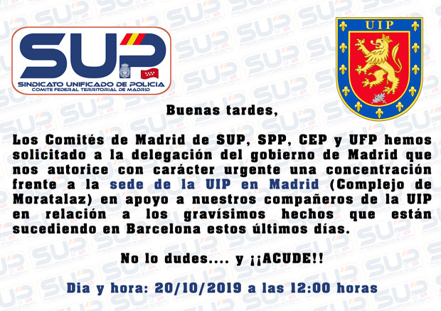 Tras gestiones realizadas por SUP Madrid con la JSP, en relación al exceso horario por los servicios realizados en los macrobotellones del distrito de Moncloa. Se consigue que se compense con una...