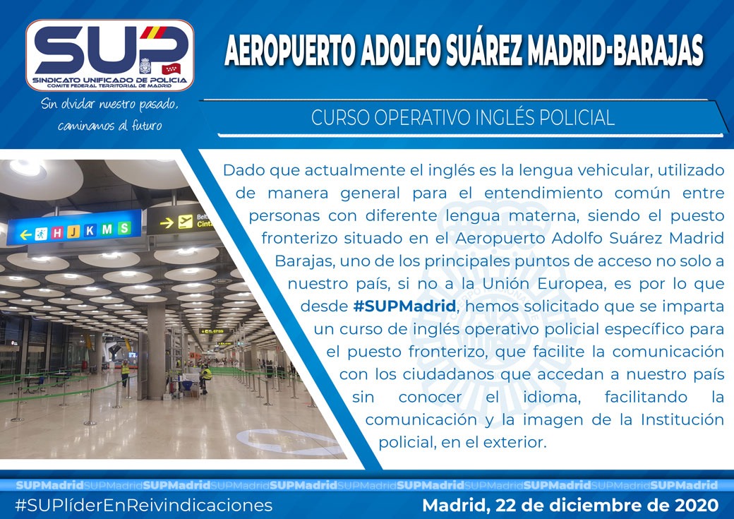 Desde #SUPMadrid hemos solicitado un curso de inglés operativo policial para los funcionarios destinados en el Aeropuerto de Madrid-Barajas.