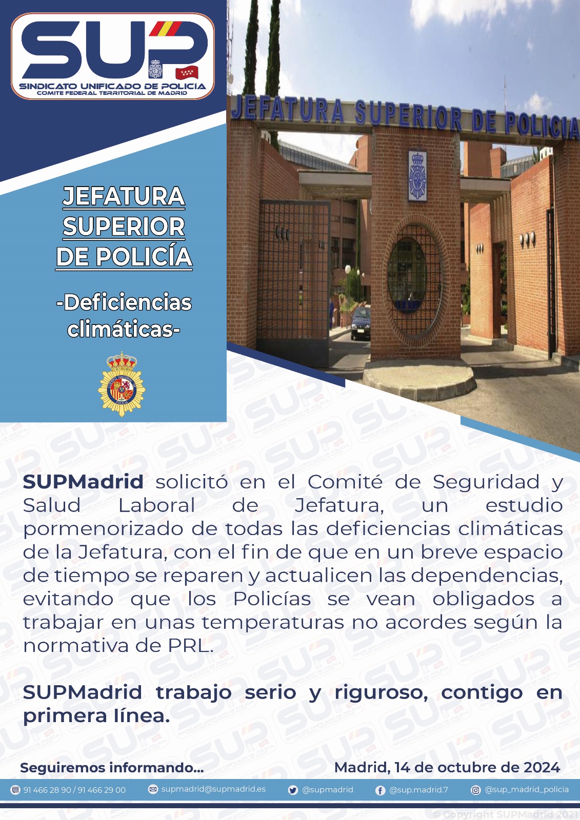 SUPMadrid solicitó en el Comité de Seguridad y Salud Laboral de Jefatura, un estudio pormenorizado de todas las deficiencias climáticas de la Jefatura
