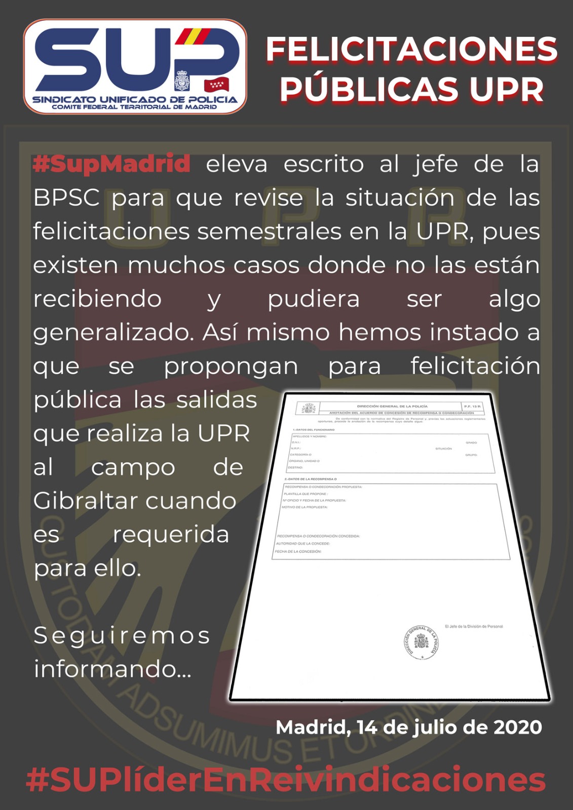 Solicitamos información al Jefe de la BPSC para conocer el estado de las felicitaciones públicas de UPR.