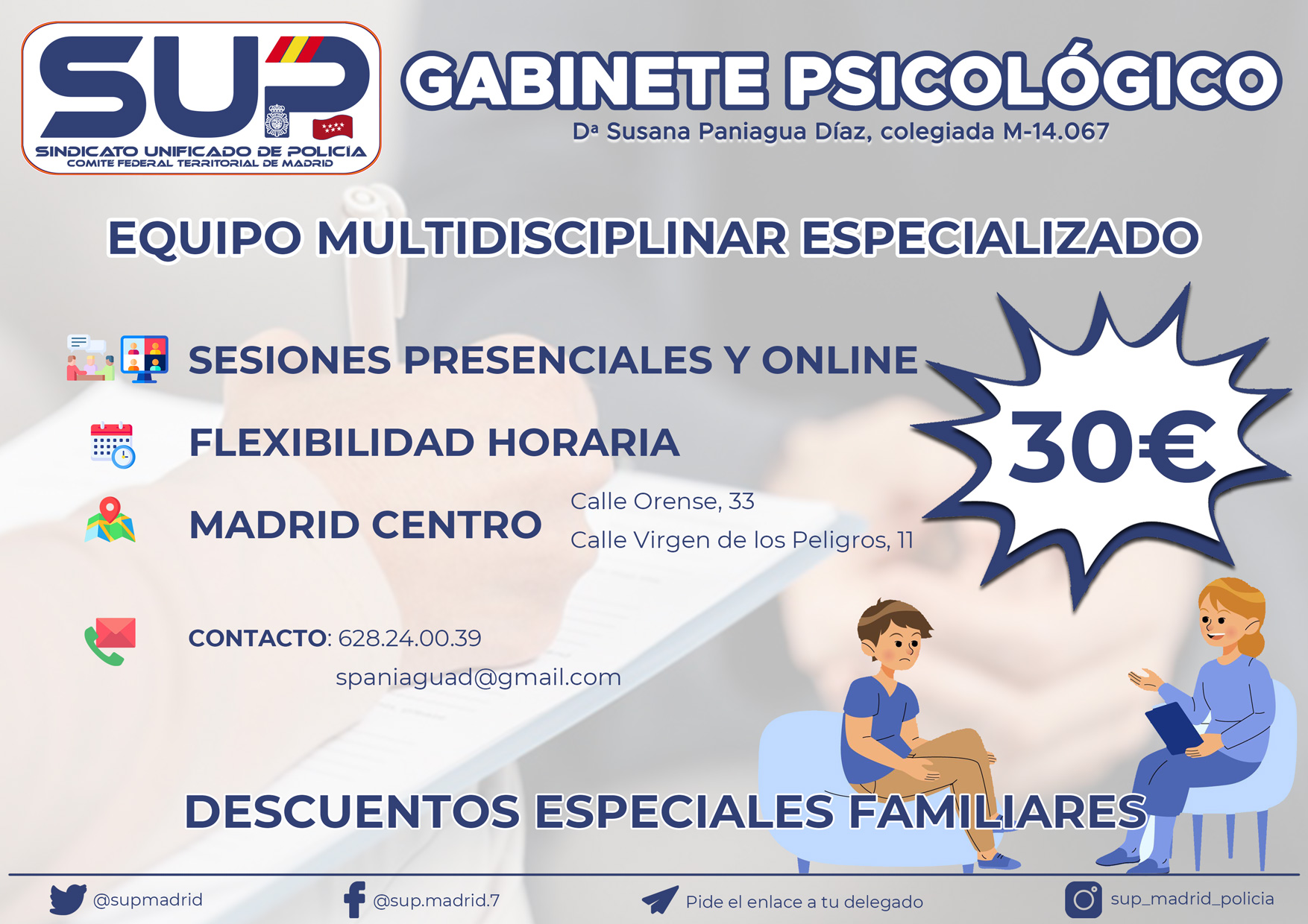 #SUPMadrid establece un convenio con un gabinete psicológico para ofrecer a sus afiliados un servicio a precio reducido.