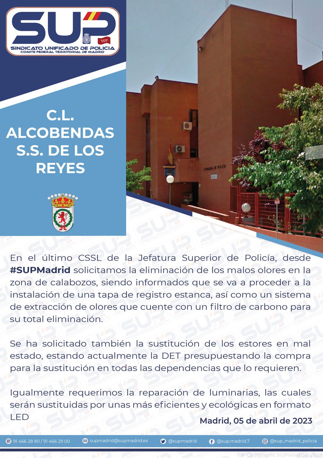 SupMadrid consigue en la último CSSL la eliminación de los malos olores en los calabozos y la sustitución de estores y luminarias por otras de tipo Led para la Comisaría Local de Alcobendas San Sebastián de los Reyes.