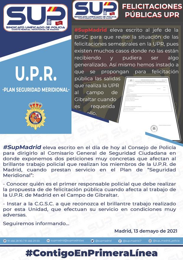 Elevamos escrito al Consejo con dos peticiones. Conocer quién es el responsable de proponer las felicitaciones de la UPR de Madrid y poner en valor el gran trabajo que están realizando en el Campo de Gibraltar.