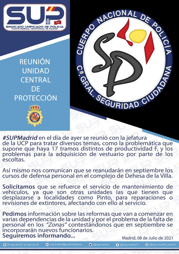 SUP Madrid se reúne con la jefatura de la UCP. Adjuntamos circular con un resumen de los temas que se trataron y las propuestas que presentamos.